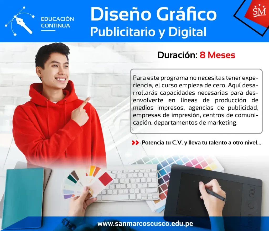 El Programa de Capacitación y Certificación Profesional en diseño gráfico digital, tiene por objetivo formar especialistas de alto nivel, los participantes son capacitados para obtener habilidades, conocimientos y competencias que les permitan desarrollar exitosamente el diseño de todo tipo de material impreso bajo una tecnología actualizada y competitiva en el mercado local. Con estas habilidades podrán desenvolverse en líneas de producción de medios impresos, agencias de publicidad, empresas de impresión, centros de comunicación, departamentos de Marketing, siendo la principal expectativa la formación de sus propias empresas de servicios en Diseño Gráfico Digital Publicitario.